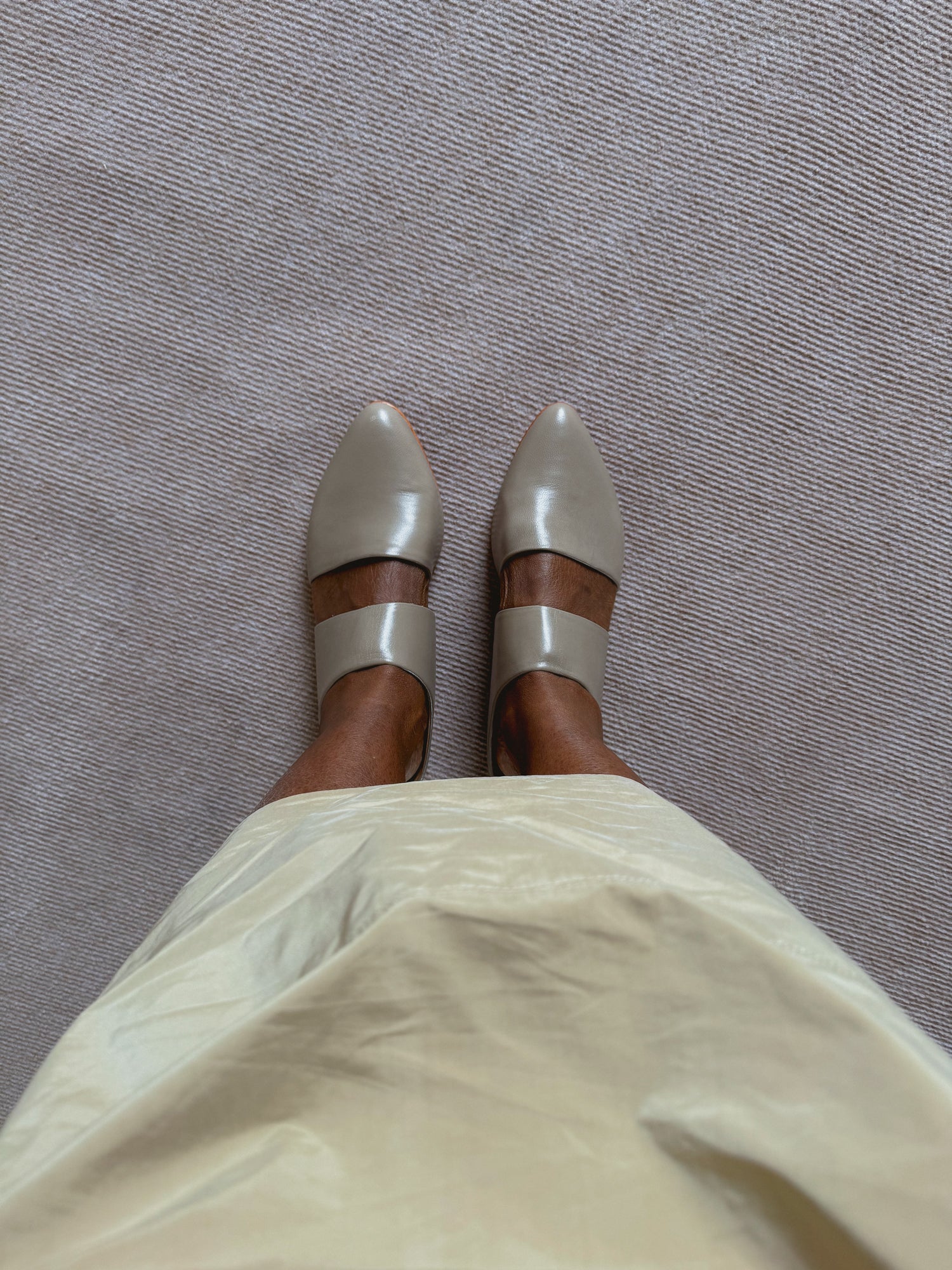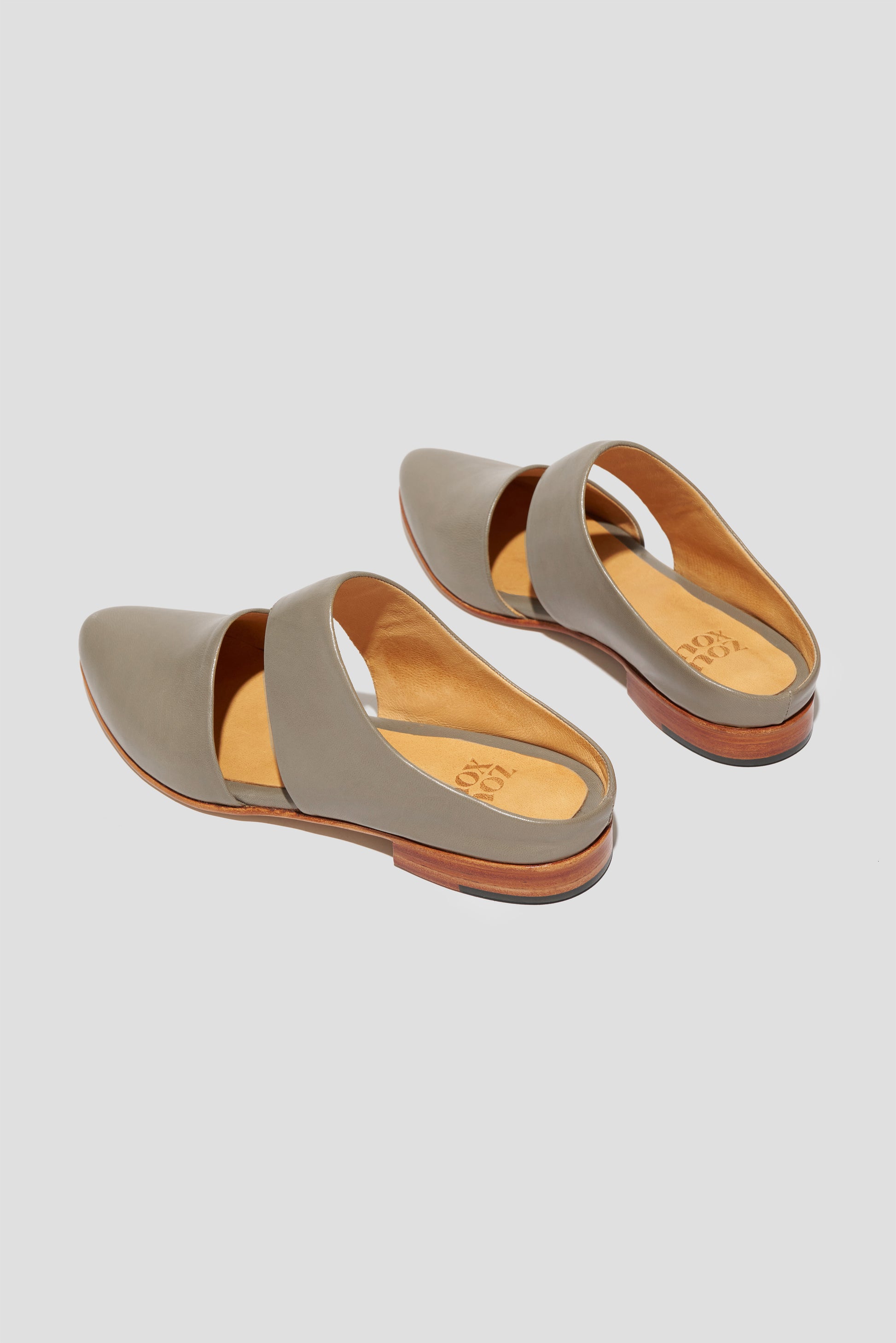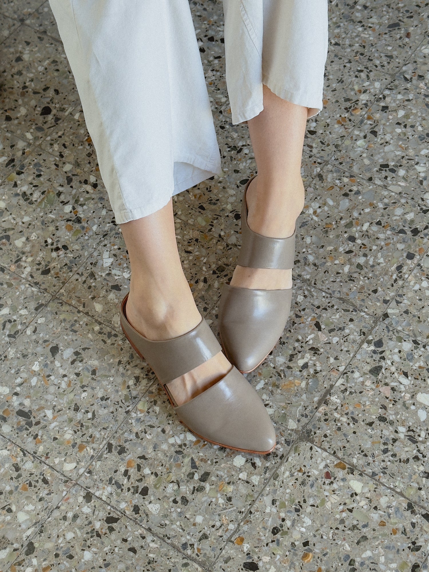 A modern take on the traditional babouche slipper, our signature flat mule is designed for ease, movement, and everyday wear. A sleek cut-out upper and almond-shaped toe create a silhouette that feels both considered and unfussy—ideal for days when comfort and movement go hand in hand. This pair is crafted in warm taupe kidskin that offers a subtle, interesting alternative to brown or black.