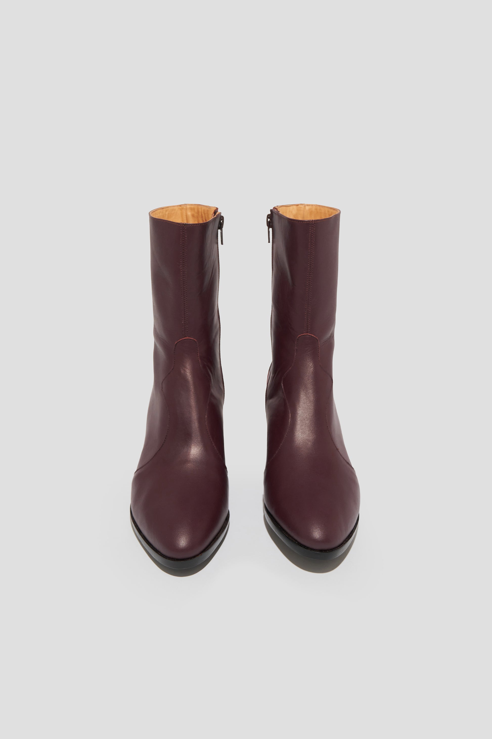 The Guada is a Western-inspired boot with pared-back detailing that makes it both wearable and distinct. An almond-shaped toe, welted outsole, and low stacked heel strike a balance between feminine and grounded. In smooth deep plum leather, Guada feels modern, sleek, and endlessly versatile.