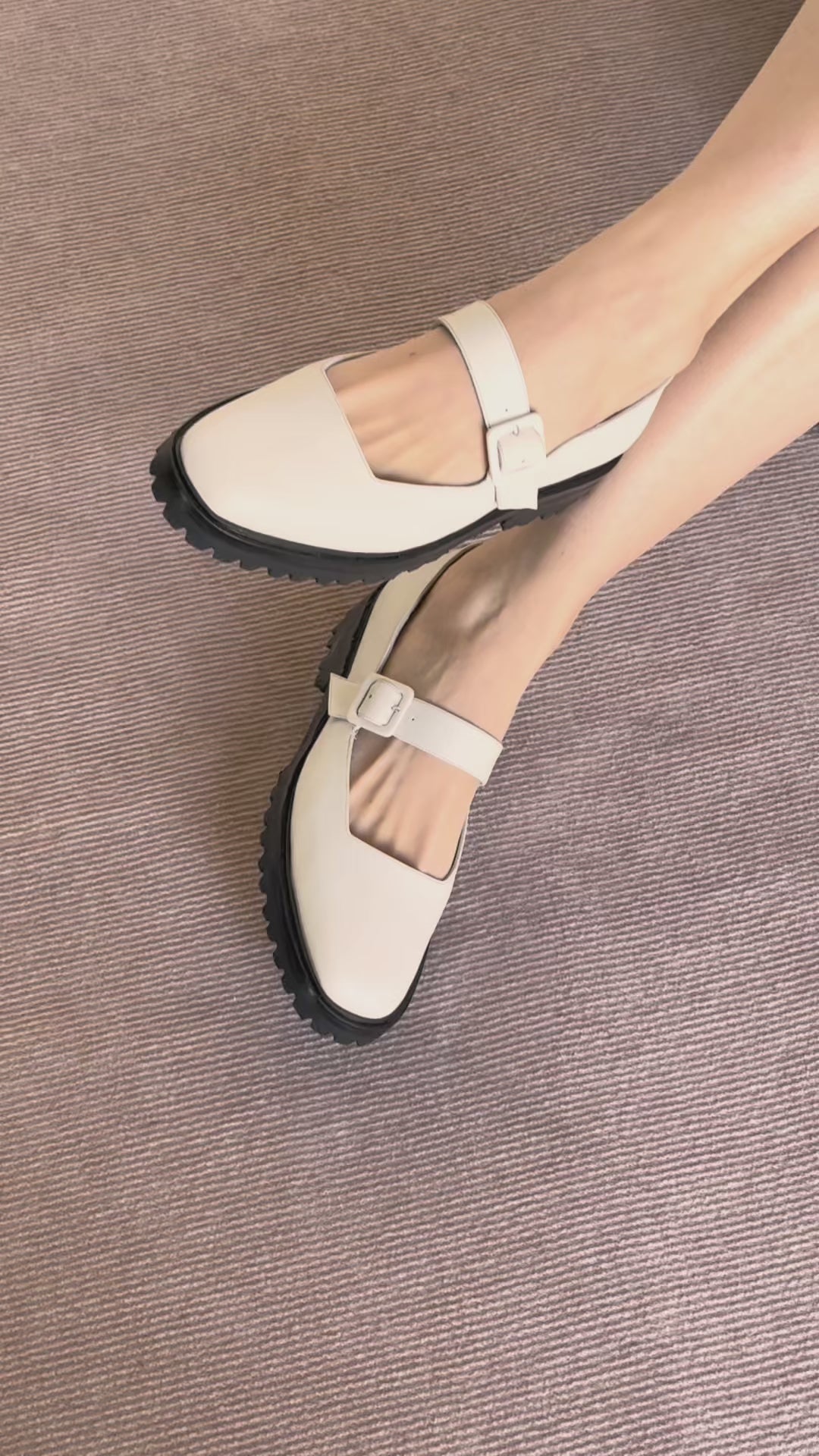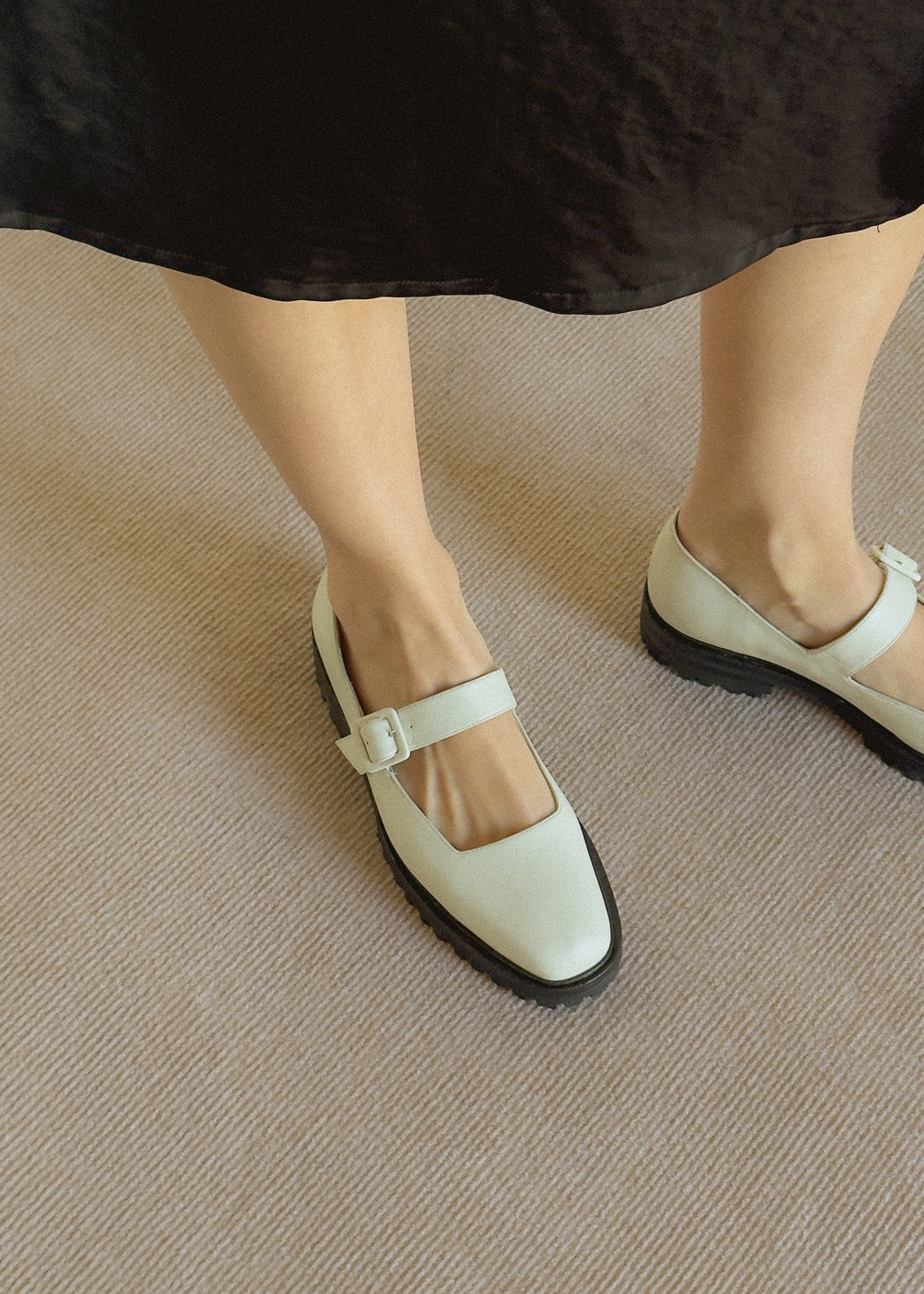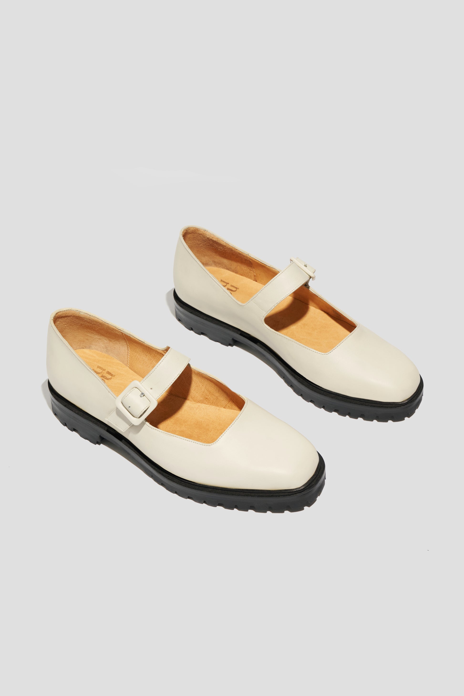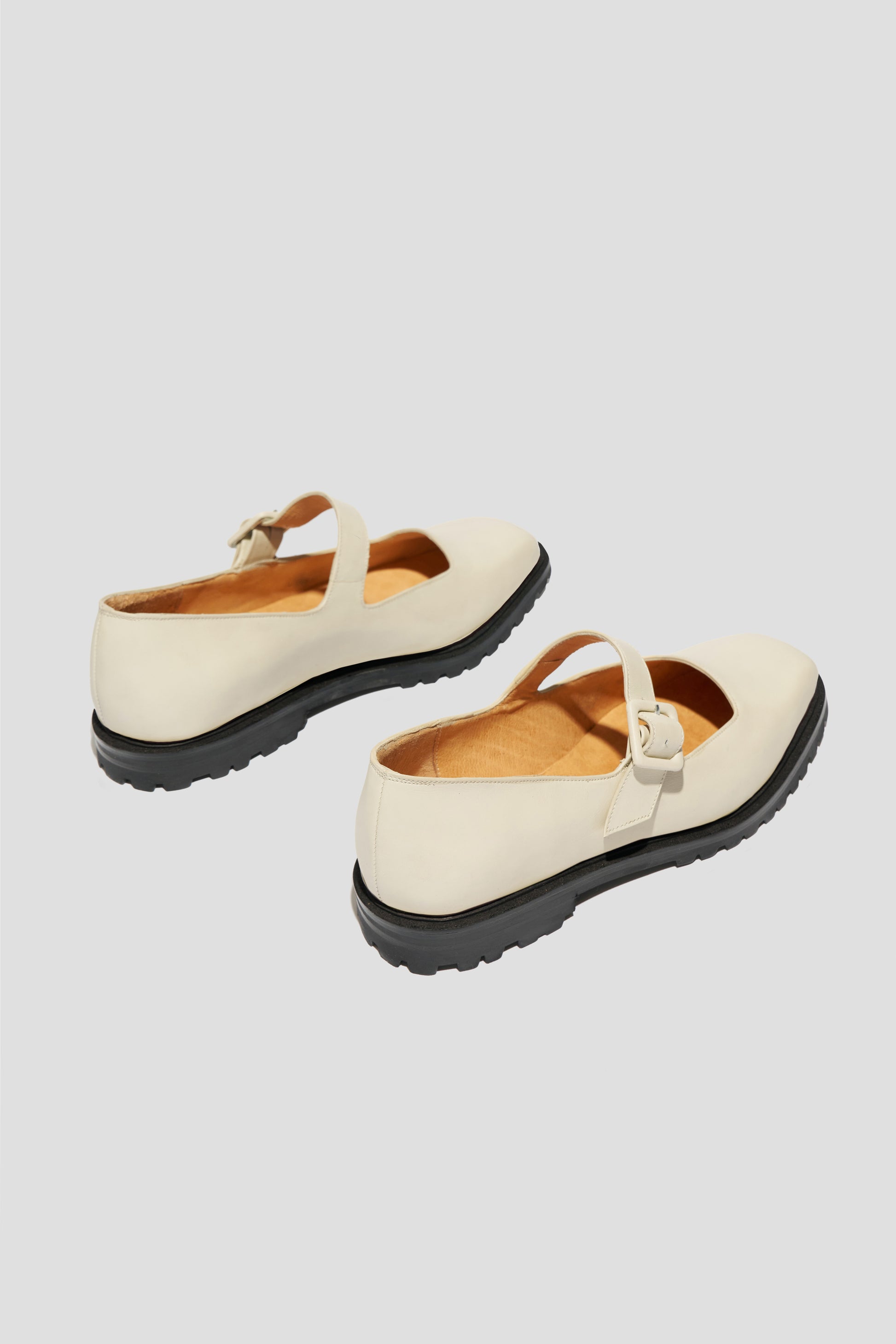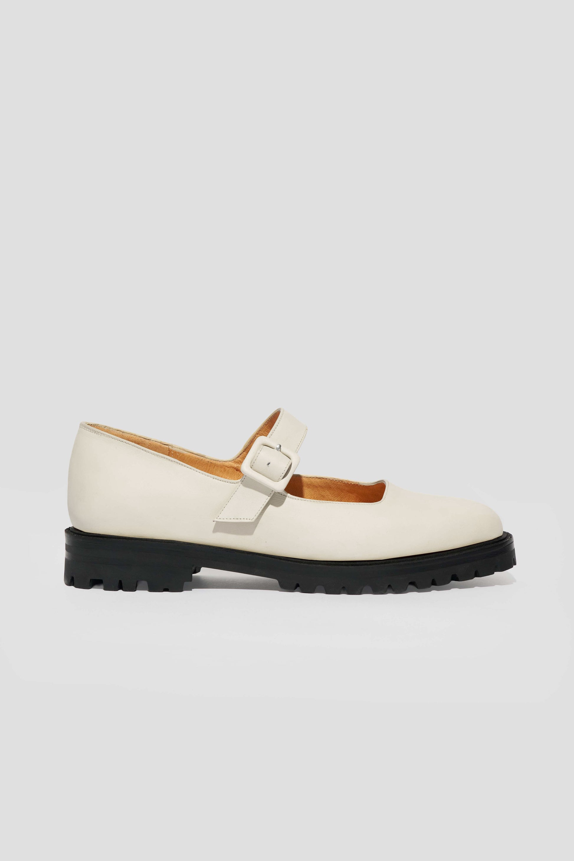 The Uchi Flat is a modern take on our bestselling Eugenia. Updated with a chunky leather and rubber lug sole and a matching leather-covered buckle, it offers a streamlined silhouette with added edge. Crafted in soft off-white leather, it strikes the perfect balance between bold and refined.