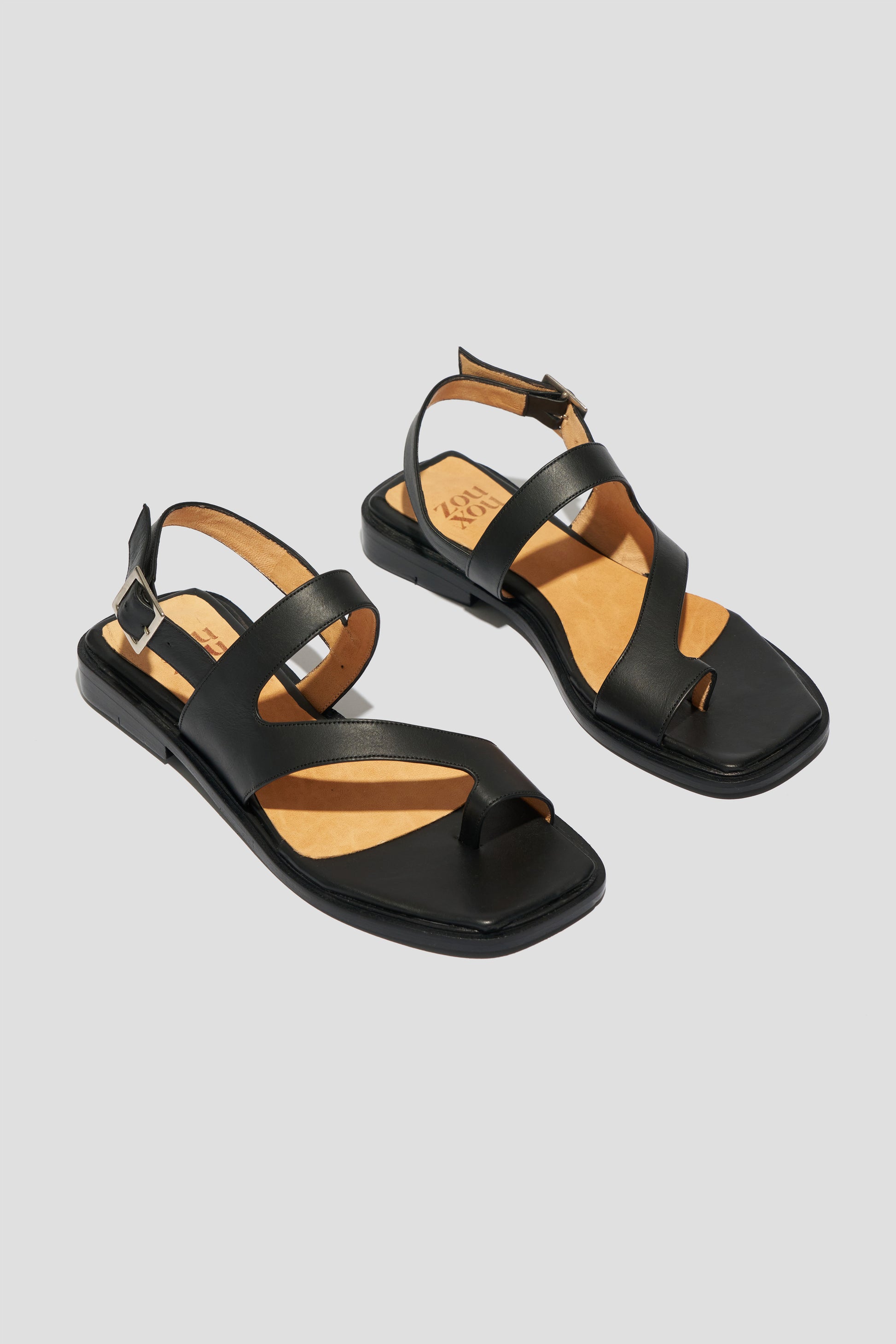 Back by demand, the Anto Sandal is our take on a bold, minimalist classic. With its structured toe ring upper and sleek metal buckle, this reissue brings edge and elegance to a practical warm-weather silhouette. The design is grounded by a low stacked leather heel and crafted in soft black leather that molds to your foot over time.