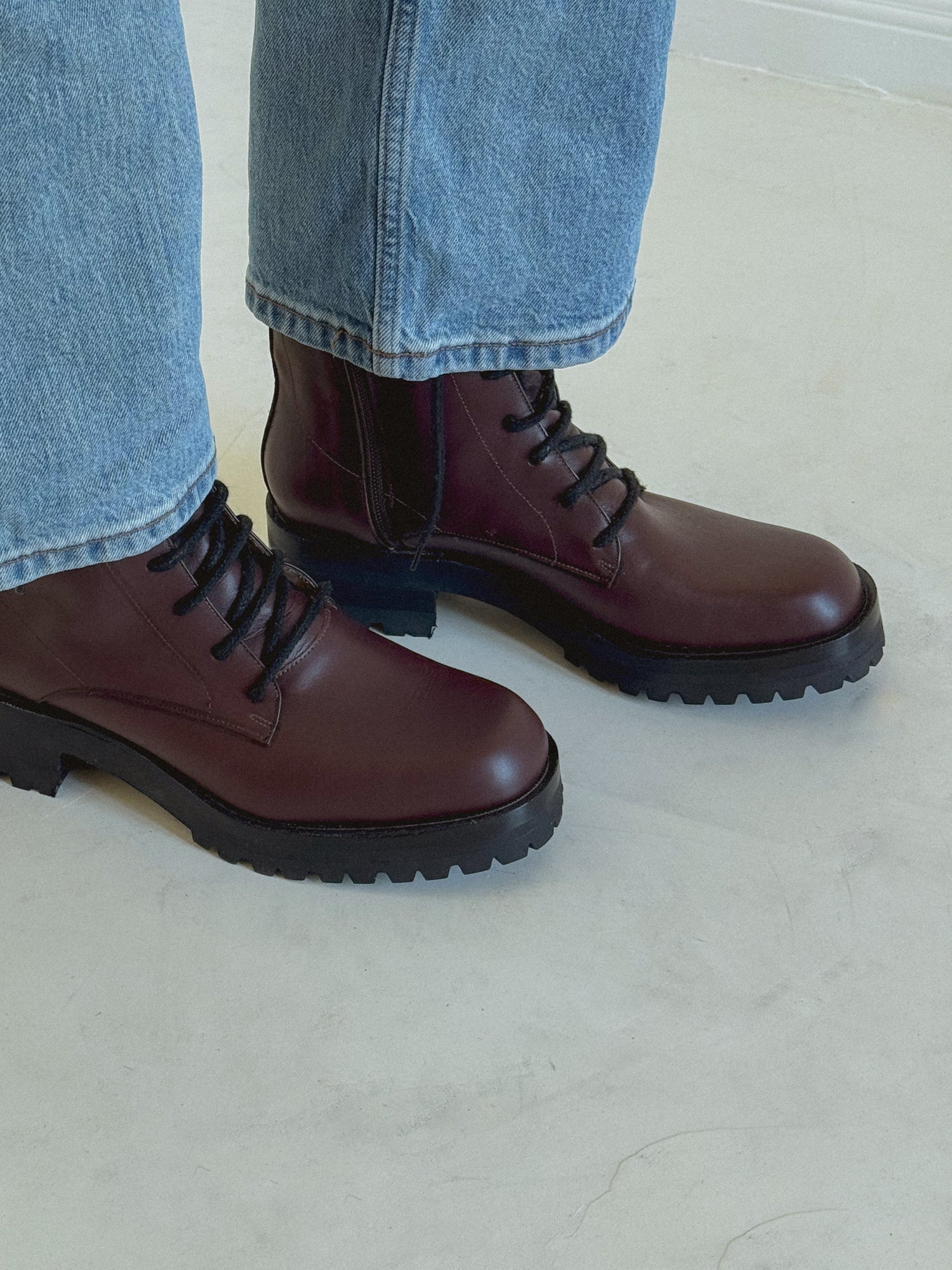 The Roma takes the strength of a combat-inspired boot and reimagines it through a more refined lens. A sculpted square toe and lug sole give it presence, while the tailored shaft keeps the silhouette sleek. In deep plum leather, this version feels rich and modern—an understated way to bring color into a winter wardrobe.