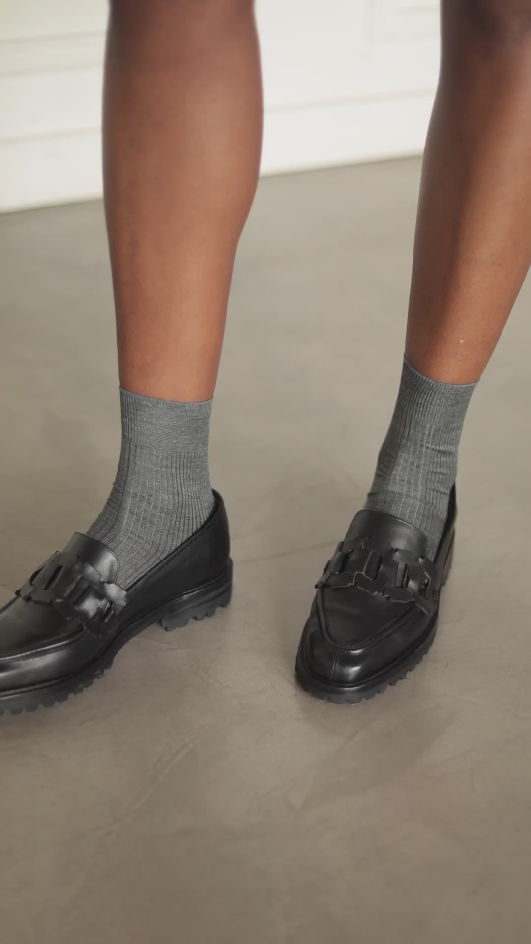 Style the Trini loafer in Black with refined, feminine pieces for playful contrast or with socks and cropped jeans instead of sneakers for an offbeat yet practical look.