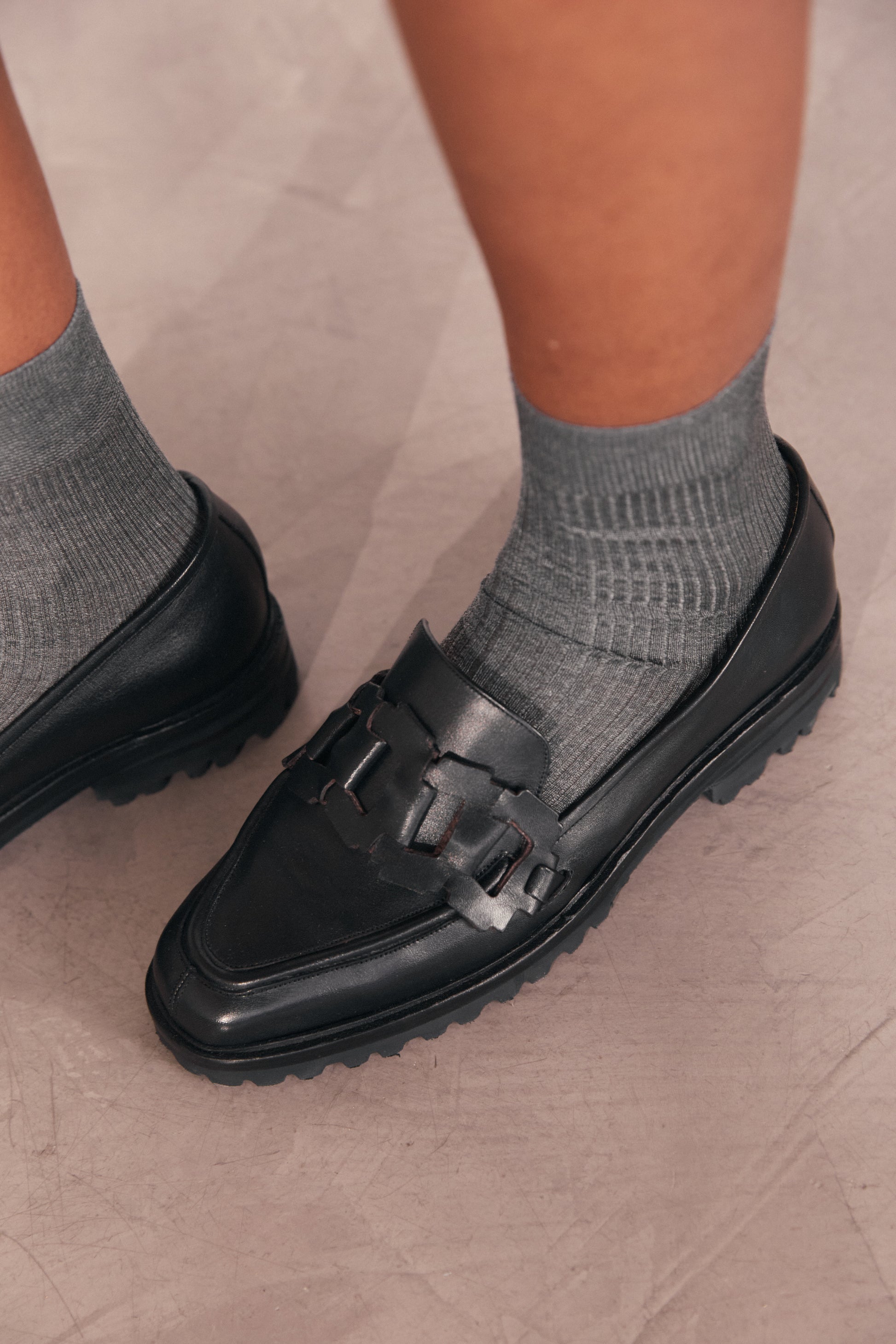 CHUNKY LOAFERS IN BLACK LEATHERCouldn't load pickup availability
